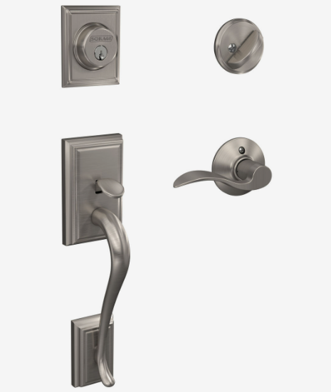 This Schlage handleset features a decorative deadbolt, matching exterior handleset grip and interior passage door knob or lever. Offering premium construction combined with a sleek design and industry-leading warranty, this is the perfect door handleset for your customized entryway. Trust your home to Schlage, makers of high-quality, innovative door hardware for over 100 years.